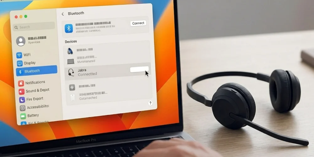 To connect the Jabra headset, it must be in pairing mode first. If you want to connect a Jabra headset with a Mac or MacBook, go to the System Settings. Go to Bluetooth option > Devices. Then select your headset and click Connect. But if you want to connect with a Windows PC, go to Bluetooth and other device settings > Add device > Bluetooth. Select your Jabra headset.