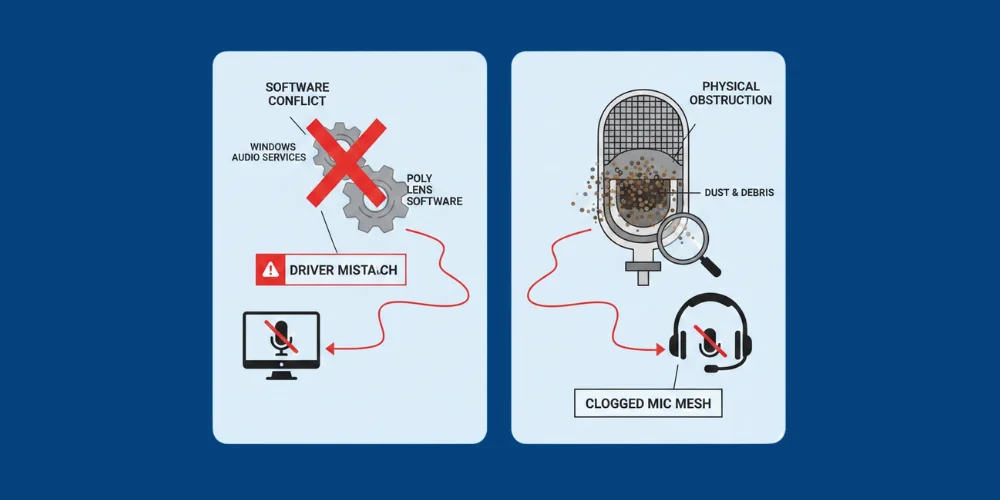 - The problem occurs because the Windows audio services and Poly Lens software are not compatible with each other. This can cause a driver mismatch.