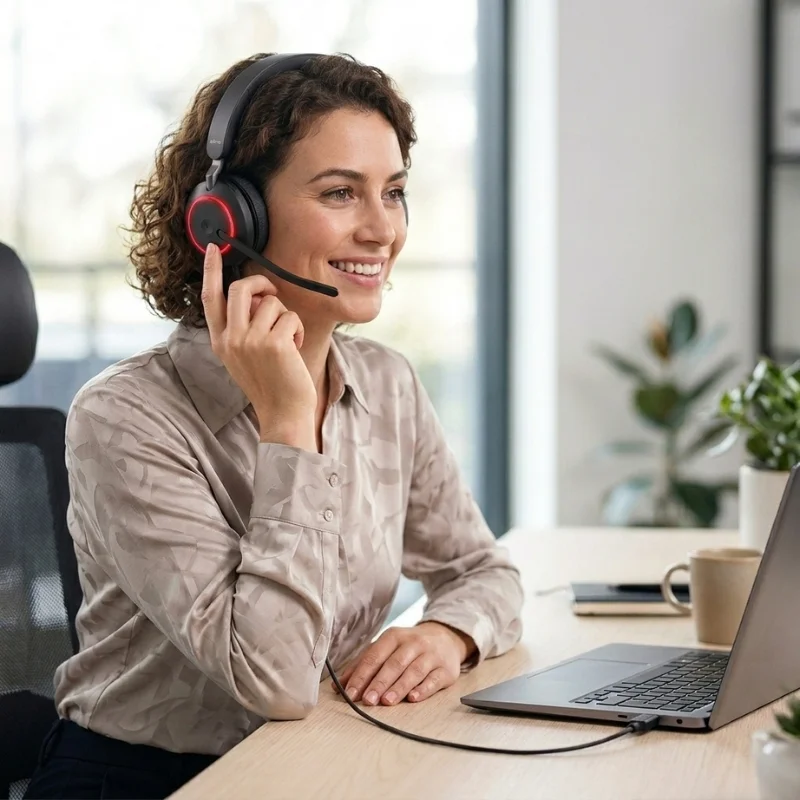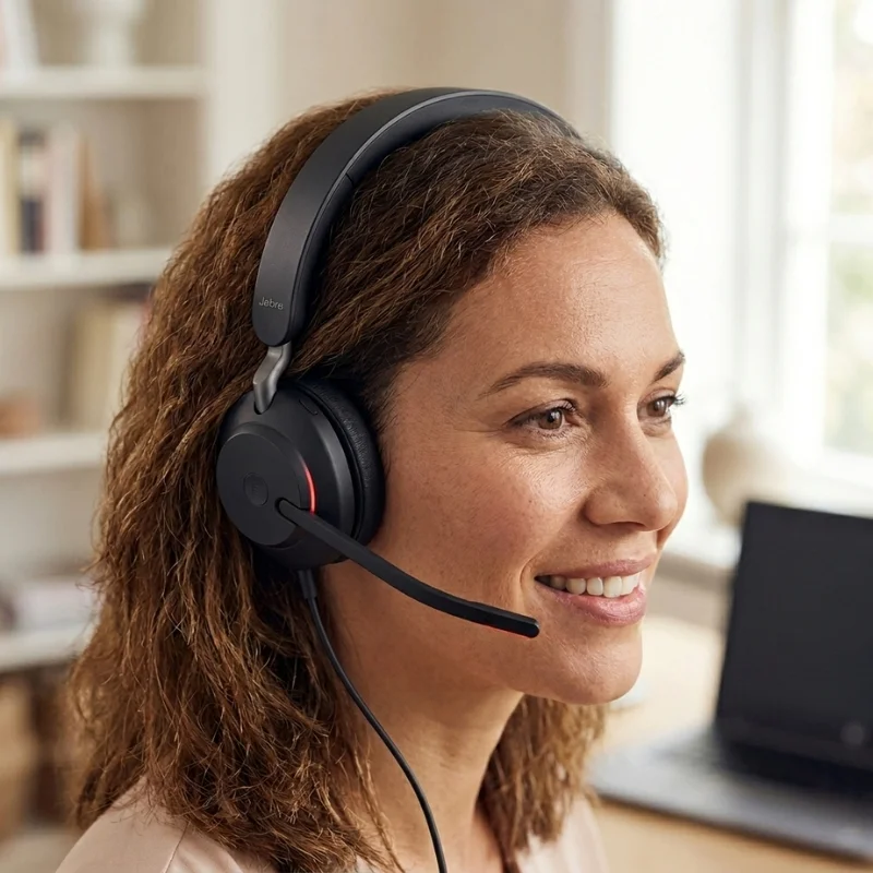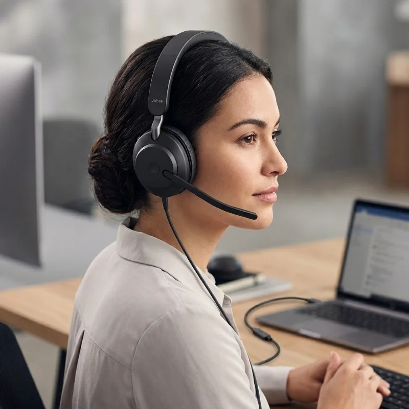 Jabra Evolve2 40 SE is equipped with isolating foam oval ear cushions and a new angled earcup design. Experience passive noise cancellation by wearing this headset and see the noise behind you fade. Instantly quiet the chaos behind you up to 48% without leaving your desk.