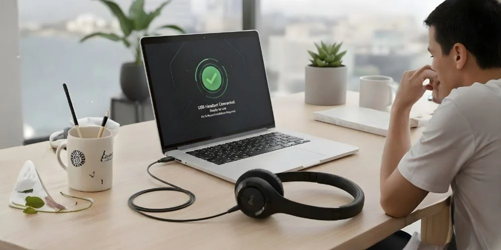Ensure the headset is selected as default audio output. If not, switch USB ports and check system sound settings.