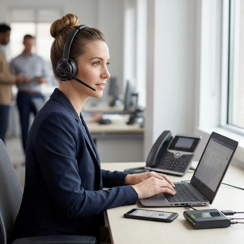 No need to disable the connection from the PC to shift to the cellphone. The Poly Savi 8210 can connect to not just 1 or 2 but about 3 devices all at once. So you can also hope in desk phone connection to have uninterrupted meeting sessions. In addition to that, you can conference on two different devices at the same time. Due to this impressive feature, office workers prefer this headset over the wired headset options.