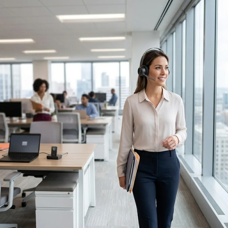 These headsets offer a freedom of movement up to a range of 50 meters, which becomes 164 feet. In this way, users can move freely between taking different calls around the desks. This also does not let them lose their connection.