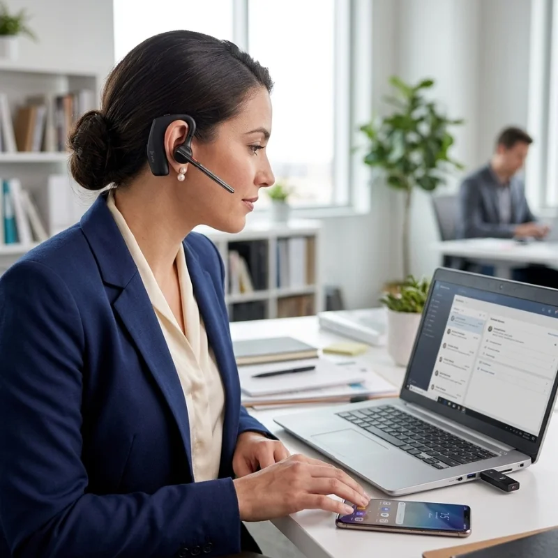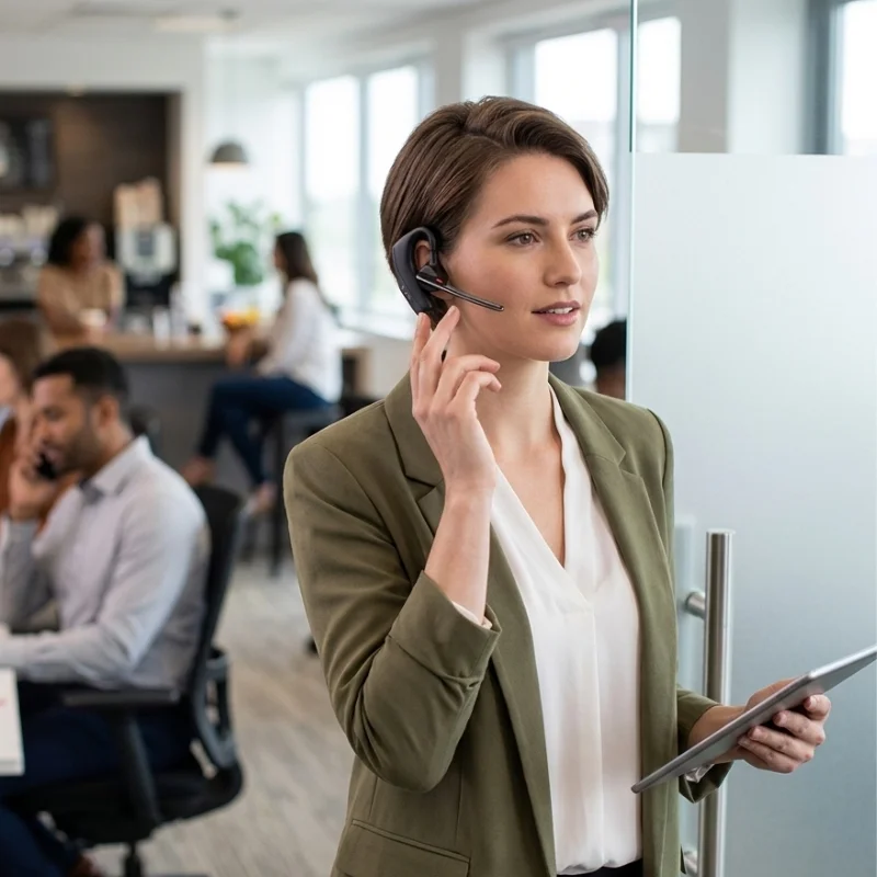 The Poly Voyager Legend 50 makes it much more convenient to manage calls. It comes along with smart sensors that attend and mute calls automatically. So when you put on a headset, the call starts, and when you take it off, it mutes instantly. In addition to this, you get intuitive controls. So you can find buttons easily to manage the calls yourself, be it if you want to adjust volume, answer, or end calls. But here is the best part. It comes with voice assistance. So you can just use commands for managing calls.