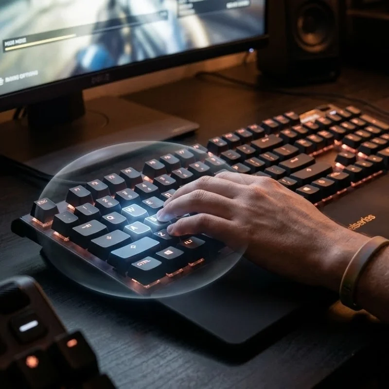 The Apex Pro by SteelSeries has an exclusive Protection Mode. While pressing the key, the sensitivity of nearby keys is automatically reduced. This feature enables gamers to press the key as fast as they can without worrying about pressing any wrong keys.